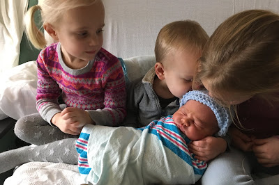 It is certainly going to take some time to adjust to being a family of six, but so far Baby4 fits right in and everyone is so happy he's finally here. He's quiet and easy going. He likes to be held (which is good, because everyone wants to hold him) and cat naps most of the day and eats most of the night. We'll have to work on that...