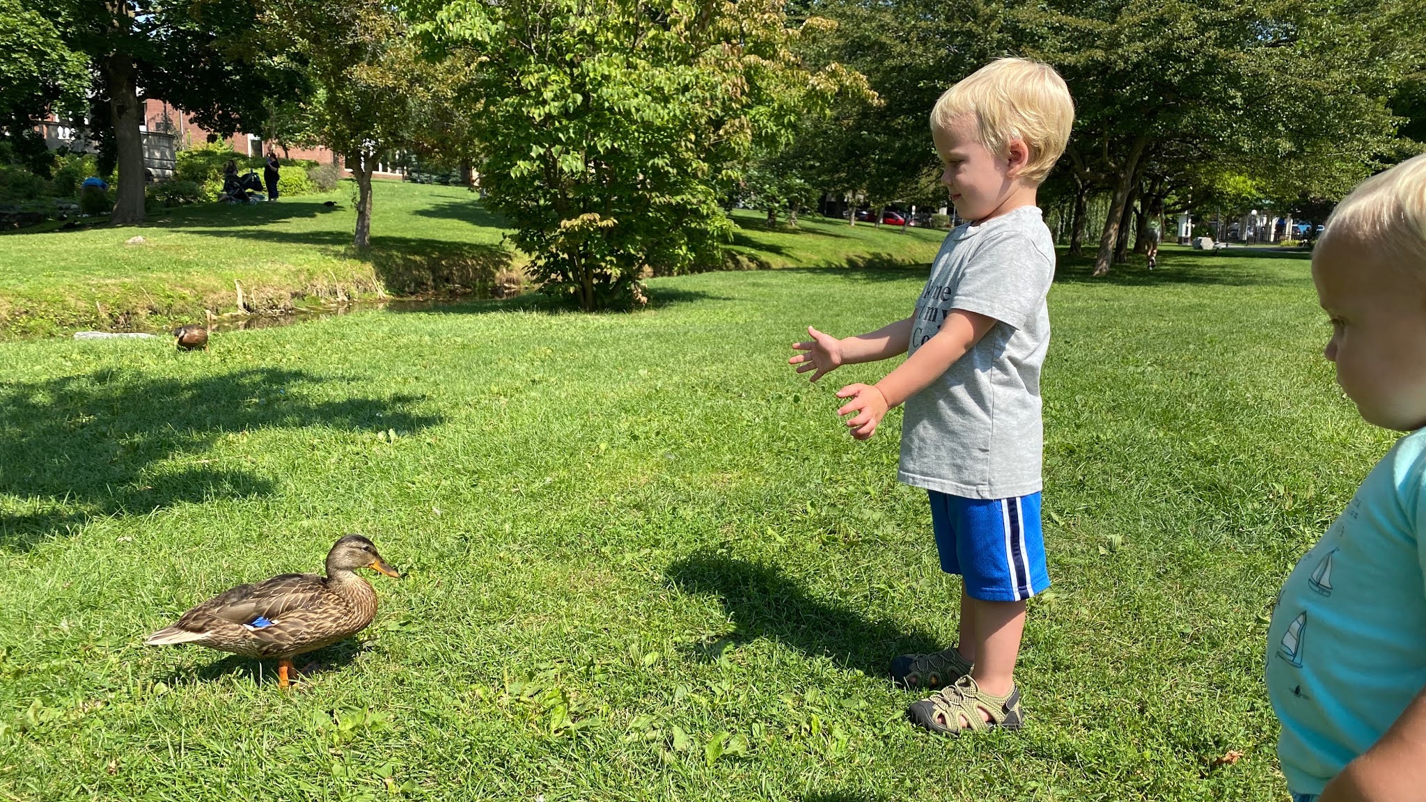 I'd heard that the trail from the monument was a good hike for kids, so we thought we'd try it out. The first half was just a walk through a cemetery, which surprisingly sparked a lot of interest from the kids. Sadly, by the time we got to the actual trail, the boys were already fading. We walked the whole trail anyway, taking lots of snack breaks. It was very informative for MiniM.E. and LittleL.G., who took turns reading the signs about the people that used to live in the woods and the British Soldiers that camped there after surrendering at Saratoga Battlefield. Most of the trail was an elevated walkway- the boys' favorite since it makes a lot of noise when you run on it. I would definitely hike it again, but use the parking lot at the trail, rather than walking down from the cemetery.